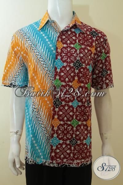 Pakaian Batik Lengan Pendek Model Dua Motif Trend Terkini, Hem Batik Unik Pria Muda Tampil Modis Dan Bergaya [LD3916C-L]