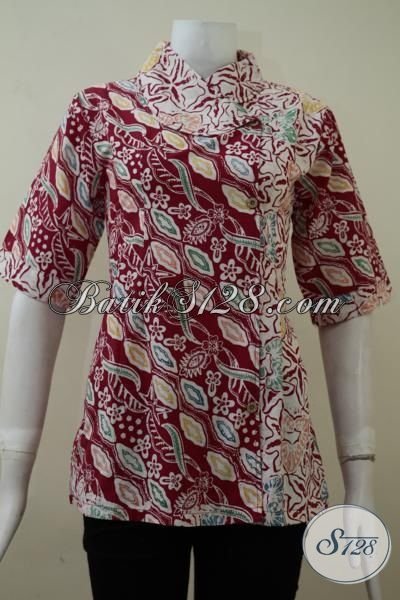 Pakaian Batik Merah Dengan Motif Unik Dan Trendy, Baju Blus Batik Lengan Tiga Perempat Desain Formal Cocok Untuk Kerja Dan Menghadiri Acara Resmi [BLS2126C-S]