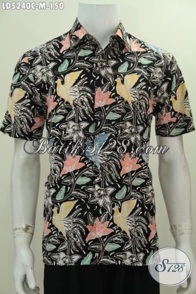 Pakaian Batik Modern Motif Unik Dan Menarik, Busana Batik Dasar Hitam Desain Keren Khas Anak Muda Proses Cap, Tampil Ganteng Serta Gaul [LD5240C-M]