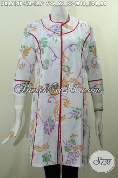 Pakaian Batik Modis Desain Keren Banget Untuk Perempuan Muda Terlihat Modis Dan Gaya, Baju Dress Batik Plisir kain Polos Motif Unik Proses Printing Dengan Aksen Merah Trend Mode Masa Kini [DR4513P-M]