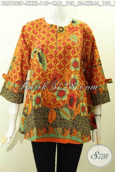 Pakaian Batik Modis Elegan, Busana Batik Wanita Terbaru Model Pita Dengan Resleting Depan, Bikin Penampilan Cantik Menawan [BLS7693P-XXL]