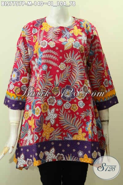 Pakaian Batik Motif Bagus, Baju Batik Wanita Blus Tanpa Krah Buatan Solo Asli, Cocok Buat Pesta Dan Jalan-Jalan [BLS7757P-M]
