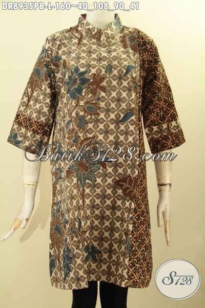 Pakaian Batik Motif Kombinasi, Dress Batik Solo Terkini Lengan 7/8 Kerah Shanghai Bahan Halus Di Lengkapi Resleting Belakang, Tampil Lebih Berkelas [DR8935PB-L]