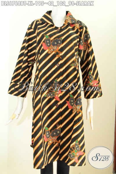 Pakaian Batik Motif Slarak Size XL, Baju Batik Kerja Wanita Modern Bahan Adem Nyaman Di Pakai Motif Mewah Kombinasi Tulis [BLS6768BT-XL]