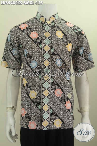 Pakaian Batik Parang Bunga Halus Proses Cap Model Kerah Shanghai Cocok Untuk Baju Kerja Kantoran Dan Kondangan [LD6948CKS-S , XL]