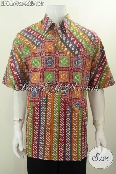 Pakaian Batik Parang Dengan Sentuhan Motif Modern, Baju Batik Modis Dan Elegan Proses Cap Tulis Model Lengan Pendek Harga 175K Ukuran 3L Untuk Pria Gemuk [LD6354CT-XXL]