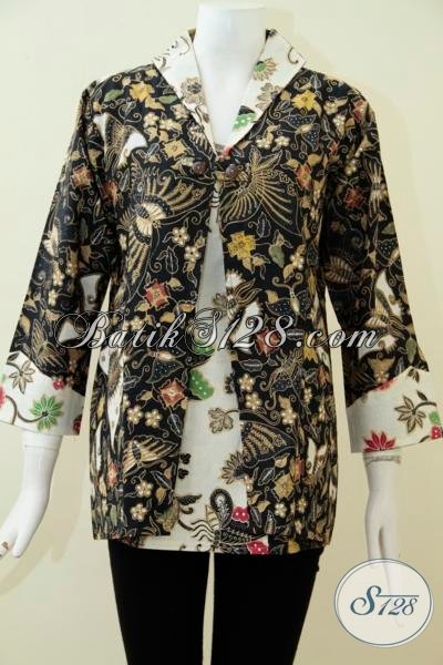 Pakaian Batik Perempuan Dewasa Model Terbaru Perpaduan Dua Motif Dan Warna Yang Kontras Dan Berkesan Mewah, Blus Batik Lengan Tiga Perempat Berbahan Katun Halus Dan Lembut Nyaman Di Pakai [BLS1883BT-L]