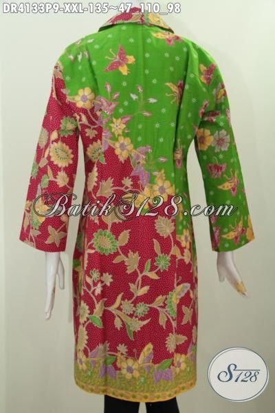 Pakaian Batik Perempuan Gemuk Ukuran 3L, Baju Dress Desain Mewah Modis Untuk Kerja Dan Trendy Buat Pesta Proses Printing [DR4133P-XXL]
