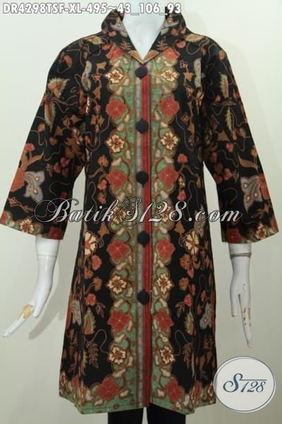 Pakaian Batik Premium Model Dress Kerah Langsung, Busana Kerja Wanita Karir Bahan Halus Batik Tulis Soga Membuat Penampilan Lebih Mewah [DR4298TSF-XL]