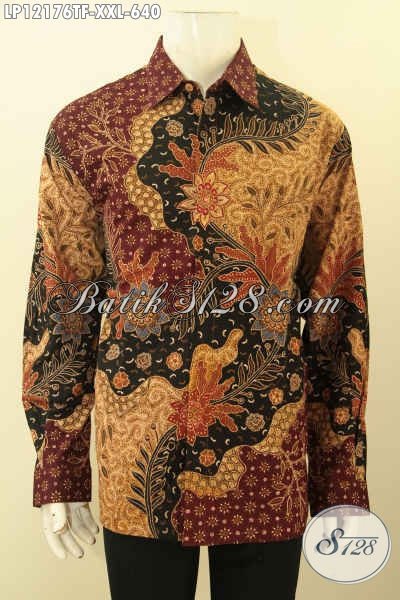 Pakaian Batik Pria Gemuk Mewah Lengan Panjang Full Furing Khas Jawa Tengah, Busana Batik Premium Jenis Tulis Lasem Desain Terkini Kesukaan Pejabat Dan Eksekutif [LP12176TF-XXL]