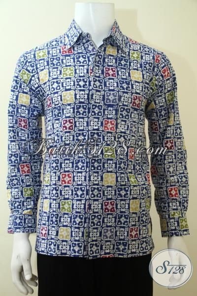 Pakaian Batik Pria Model Lengan Panjang Motif Kotak-Kotak, Hem Batik Keren Proses Cap Cowok Bisa Tampil Trendy [LP3634C-S]
