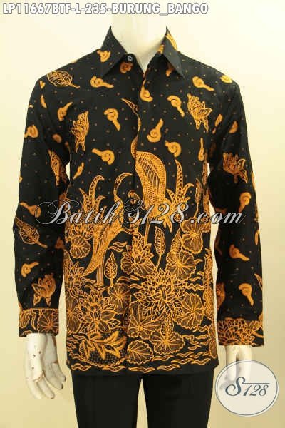 Pakaian Batik Pria Modis Desain Elegan Berkelas, Busana Batik Lengan Panjang Motif Burung Bangau Daleman Lapisan Furing Kwalitas Istimewa Yang Membuat Penampilan Lebih Menawan [LP11667BTF-L]