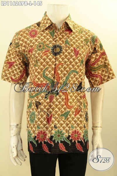 Pakaian Batik Pria Motif Mewah Warna Berkelas, Busana Batik Lengan Pendek Proses Printing Cabut Bahan Adem Kwalitas Bagus Hanya 145K, Pas Banget Kerja Atau Kondangan [LD11626PB-L]