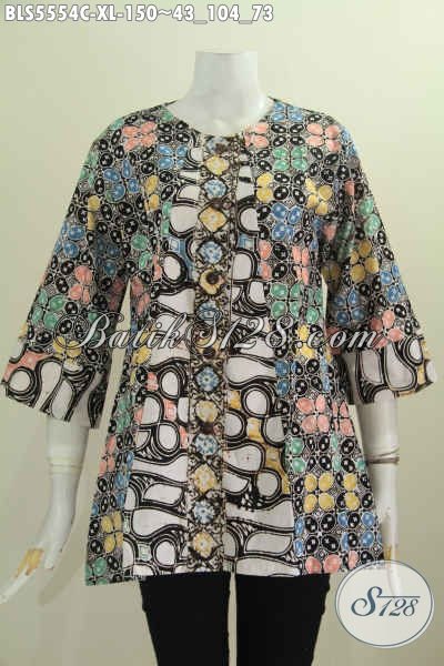 Pakaian Batik Size XL Spesial Buat Wanita Dewasa, Blus Tanpa Kerah Motif Bagus Proses Cap, Tampail Gaya Hanya Dengan 150K [BLS5554C-XL]