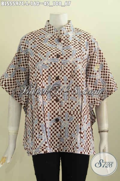 Pakaian Batik Solo Halus Motif Keren Proses Cap, Blus Kerah Shanghai Model Kipas Modis Untuk Hangout [BLS5597C-L]