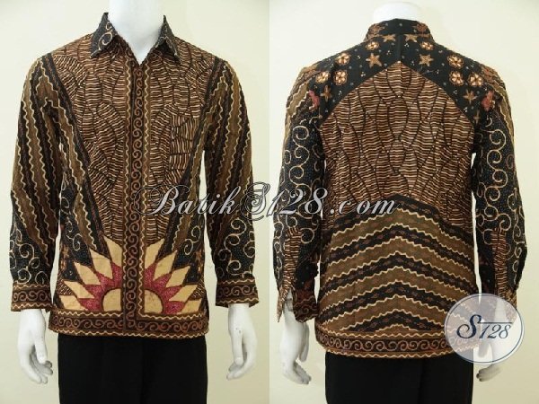 Pakaian Batik Solo Klasik Terbaru Proses Tulis Soga Motif Matahari, Hem Batik Lengan Panjang Mewah Dengan Daleman Full Furing Membuat Pria Tampil Lebih Berkelas [LP2830TSF-S]
