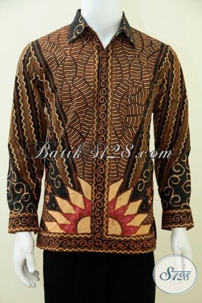 Pakaian Batik Solo Klasik Terbaru Proses Tulis Soga Motif Matahari, Hem Batik Lengan Panjang Mewah Dengan Daleman Full Furing Membuat Pria Tampil Lebih Berkelas [LP2830TSF-S]