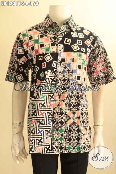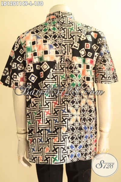 Pakaian Batik Solo Lengan Pendek Halus Motif Tren Masa Kini, Busana Batik Trendy Jenis Cap Untuk Kerja Dan Jalan-Jalan [LD12011C-L]
