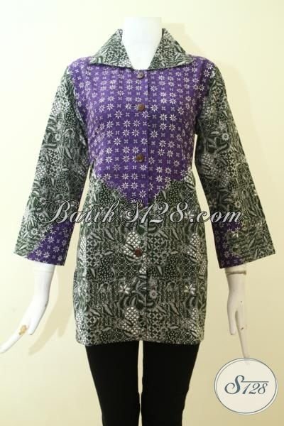 Pakaian Batik Solo Proses Cap Tulis Warna Kombinasi Ungu Dan Hijau Lebih Modis Serta Fashionable, Blus Batik Murah Berbahan Halus Adem Nyaman Di Kenakan [BLS2555CT-M]