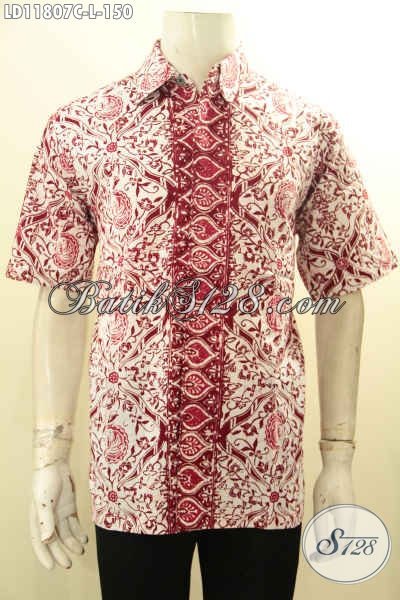 Pakaian Batik Solo Spesial Untuk Pria Kantoran, Busana Batik Elegan Warna Cerah Bahan Halus Motif Trendy Lengan Pendek, Cocok Juga Buat Kondangan [LD11807C-L]