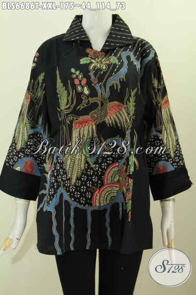 Pakaian Batik Solo Terkini, Baju Batik Berkelas Lengan 7/8 Ukuran Jumbo Model Kerah Kotak Untuk Tampil Rapi Dan Menawan [BLS6686T-XXL]
