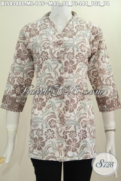 Pakaian Batik Solo Untuk Wanita Muda Dan Dewasa Tampil Lebih Gaya, Jual Batik Blus Plisir Kerah Polos Motif Terkini Proses Cap Cocok Untuk Seragam Kerja [BLS4348C-M , L]