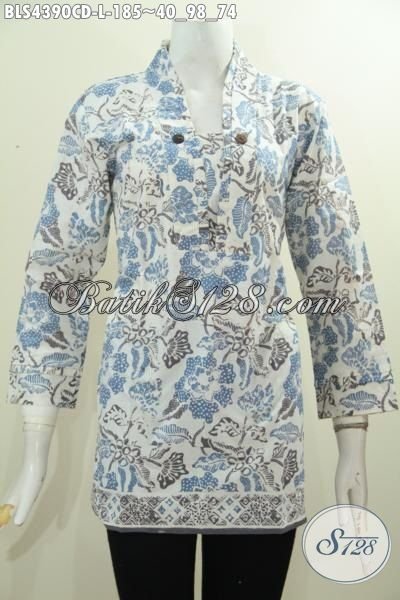 Pakaian Batik Terbaru Dari Solo Untuk Wanita Muda Dan Dewasa, Baju Batik Blus Resleting Belakang Dengan Motif Trendy Dan Halus Proses Cap Bledak Pas Untuk Seragam Kerja Kantoran [BLS4390CD-L]