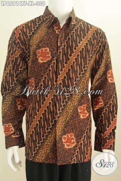 Pakaian Batik Terbaru Untuk Pria Dewasa, Kemeja Batik Klasik Nan Elegan Bahan Adem Model Lengan Panjang Mewah Daleman Full Furing Tampil Lebih Istimewa Proses Cap Tulis [LP6291CTF-XL]