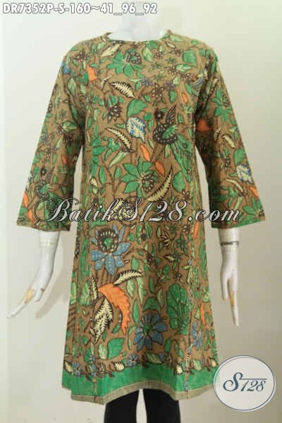 Pakaian Batik Untuk Wanita Muda Tampil Cantik Mempesona, Baju Batik Dress Tanpa Krah Motif Bagus Proses Printing 100 Ribuan [DR7352P-S]