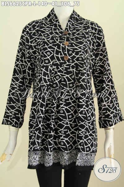 Pakaian Batik Untuk Wanita Tampil Kekinian, Busana Blus Batik Solo Desain Keren Warna Elegan Bahan Paris Harga 140K Proses Cap [BLS6625CPR-L]