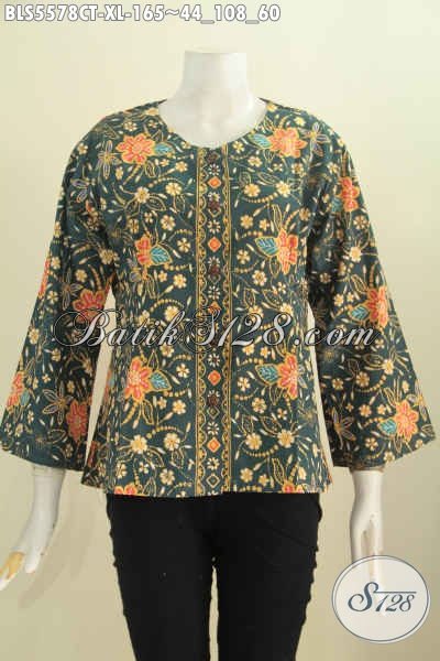 Pakaian Batik Wanita Dewasa, Blus Bati Tanpa Kerah Ukuran XL Bahan Adem Proses Cap Tulis Motif Trendy Pas Buat Ke Kantor [BLS5578CT-XL]
