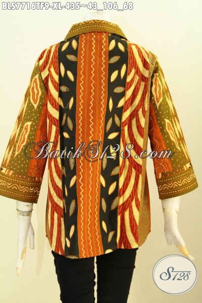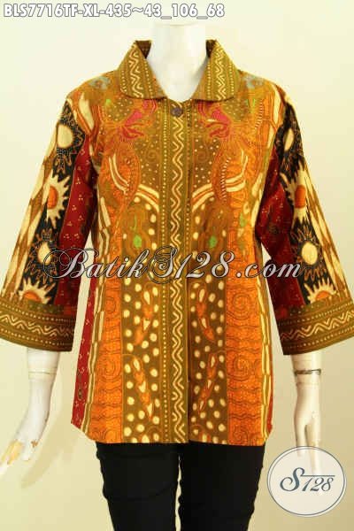 Pakaian Batik Wanita Dewasa, Blus Batik Klasik Elegan Cocok Untuk Kerja Dan Acara Resmi Bahan Adem Motif Sinaran Daleman Full Tricot Hanya 435K [BLS7716TF-XL]