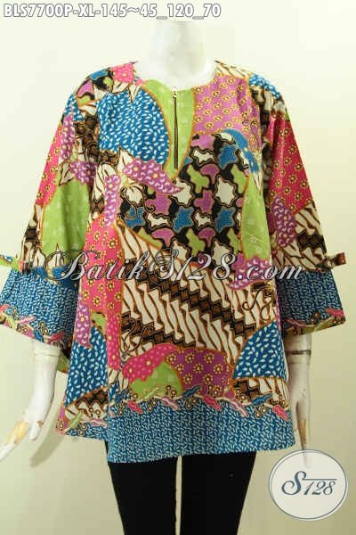 Pakaian Batik Wanita Dewasa, Blus Batik Model Pita Di Lengkapi Resleting Depan Berbahan Halus Motif Unik Printing Harga 145 Ribu Saja [BLS7700P-XL]