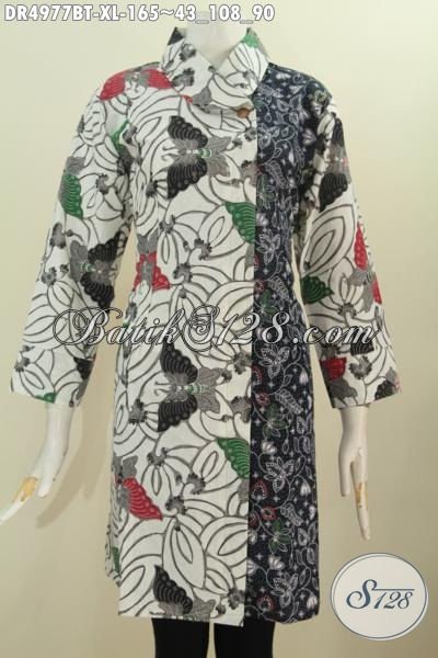 Pakaian Batik Wanita Dewasa Dengan Desain Motif Mewah Warna Bagus Proses Kombinasi Tulis, Baju Batik Elegan Model Kerah Miring Untuk Penampilan Lebih Istimewa [DR4977BT-XL]