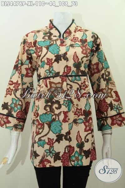 Pakaian Batik Wanita Dewasa Motif Bunga Model Kerah Shanghai Plisir Polos Proses Printing, Baju Batik Halus Buat Wanita Dewasa Terlihat Anggun Dan Cantik [BLS4476P-XL]