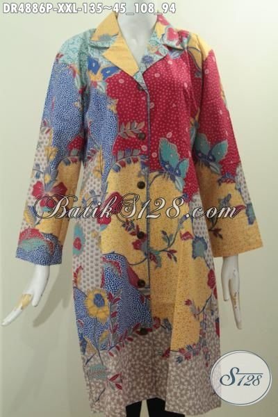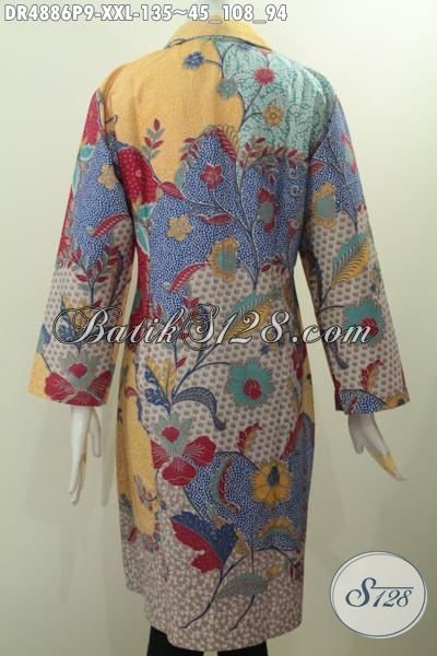 Pakaian Batik Wanita Gemuk Dengan Motif Dan Desain Kerah Safari Yang Terlihat Mewah Dan Berkelas, Baju Batik Untuk Kerja Warna Pagi Sore Proses Printing Hanya 100 Ribuan [DR4886P-XXL]