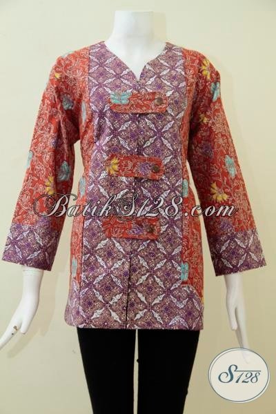 Pakaian Batik Wanita Harga Terjangkau Dengan Kwalitas Bagus, Blus Batik Print Motif Dan Model Modern Cewek Tampil Labih Percaya Diri [BLS1825CT-XL]