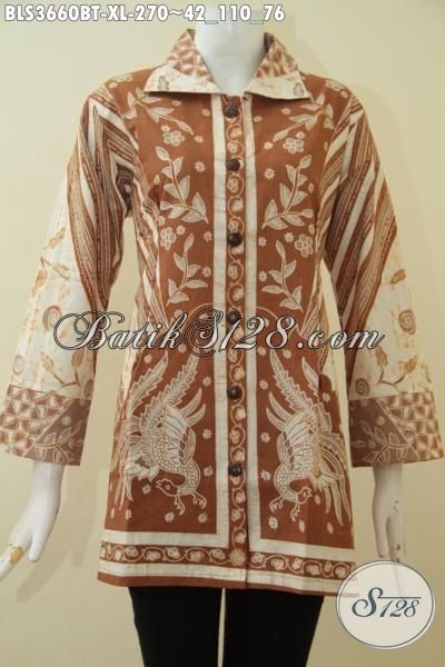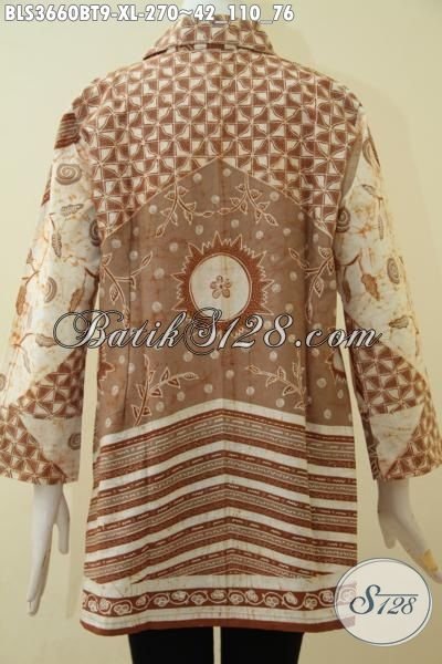 Pakaian Batik Wanita Karir Penunjang Penampilan Sehari-Hari, Blus Batik Elegan Kombinasi Tulis Desain Formal Cewek Terlihat Anggun [BLS3660BT-XL]