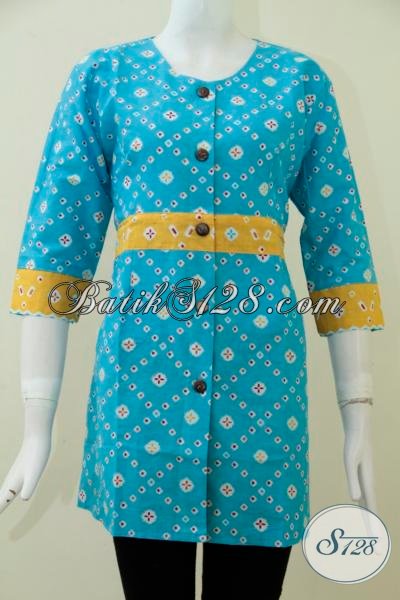 Pakaian Batik Wanita Model Blus Cantik Warna Biru Muda Yang Cerah Dan Trendy, Baju Batik Perempuan Muda Tampil Keren Dan Feminim [BLS1664P-M , L , XXL]