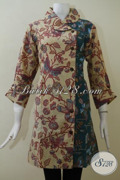 Pakaian Batik Wanita Model Keren Dan Paling Trendy Saat Ini, Dress Batik Kombinasi Warna Cream Dan Hijau Sungguh Modis Dan Mewah, Cocok Untuk Acara Formal [DR2069P-L]