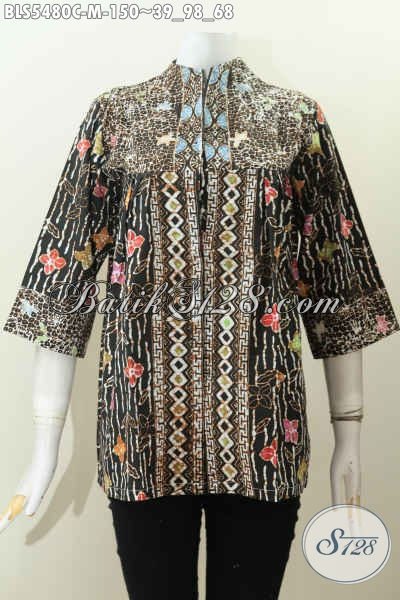 Pakaian Batik Wanita Terkini, Baju Atasan Bahan Batik Proses Cap Model Kerah Langsung Kwalitas Istimewa Harga 150K [BLS5480C-M]