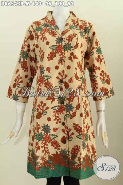 Pakaian Batik Wanita Terkini, Busana Batik Solo Halus Kwalitas Istimewa Bahan Adem Proses Printing Model Kerah Langsung Harga 140K [DR6343P-M]