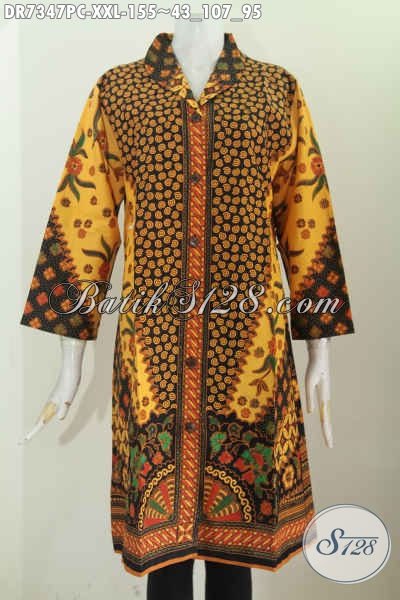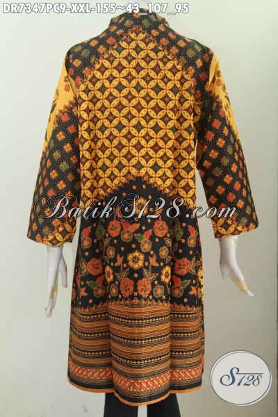 Pakaian Batik Wanita Terkini, Dress Batik Solo Elegan Dan Mewah Proses Printing Motif Klasik Bahan Halus Nyaman Di Pakai Kerja [DR7347PC-XXL]