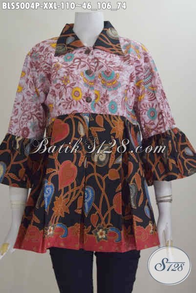 Pakaian Blus 3L, Busana Batik Elegan Keren Model Kerah Lancip Yang Cocok Untuk Ke Kantor, Baju Batik Printing Dual Warna Buatan Solo Harga 110K [BLS5004P-XXL]