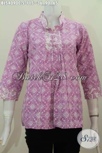 Pakaian Blus Batik Istimewa Desain Mewah, Baju Batik Santai Model Kerah Shanghai Motif Bagus Proses Cap Hanya 100 Ribuan [BLS4090C-S]
