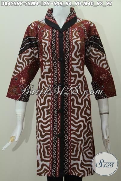 Pakaian Dress Batik Klasik Motif Sinaran Matahari Dengan Kombinasi Warna Elegan Dan Mewah Proses Printing, Baju Batik Seragam Kerja Formal Cocok Banget Buat Rapat [DR4329P-M]