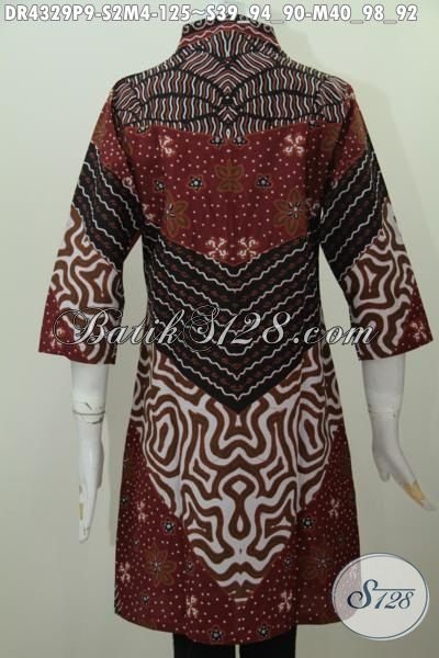 Pakaian Dress Batik Klasik Motif Sinaran Matahari Dengan Kombinasi Warna Elegan Dan Mewah Proses Printing, Baju Batik Seragam Kerja Formal Cocok Banget Buat Rapat [DR4329P-S , M]