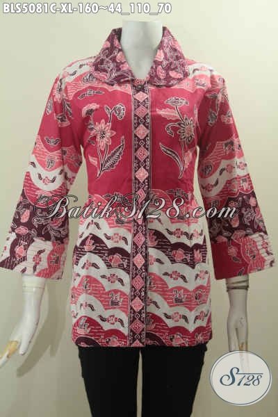 Pakaian Blus Batik Merah Motif Bagus Banget Modis Untuk Acara Penting, Baju Batik Solo Kerah Benang Besar Proses Cap Nan Elegan Wanita Tampil Lebih Anggun Serta Menawan [BLS5081C-XL]