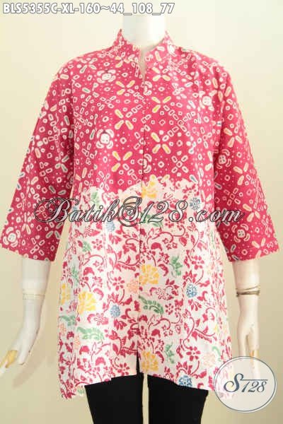 Pakaian Blus Batik Model Kerah Shanghai, Hadir Dengan Kombinasi Dua Motif Proses Cap, Baju Batik Wanita Dewasa Untuk Terlihat Modis Dan Gaya [BLS5355C-XL]