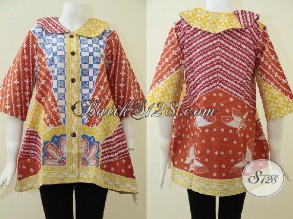 Pakaian Blus Batik Modern Dengan Kombinasi Warna Dan Motif Cerah Dan Keren, Baju Batik Desain Terbaru Untuk Wanita Muda Tampil Beda [BLS1730P-M]